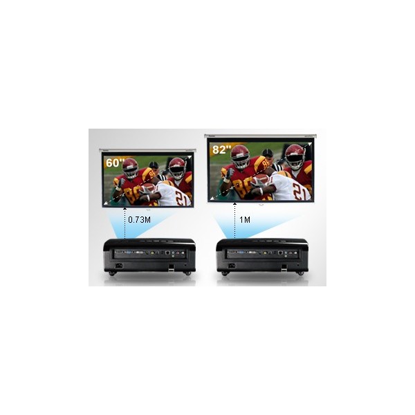 Geschikt voor projectie oppervlakken van: max 250x200 cm (dit is een advies)